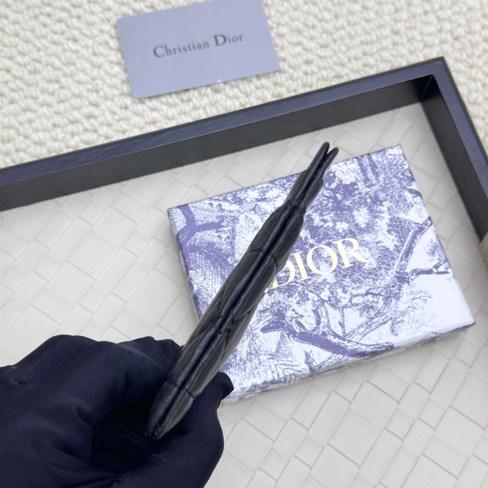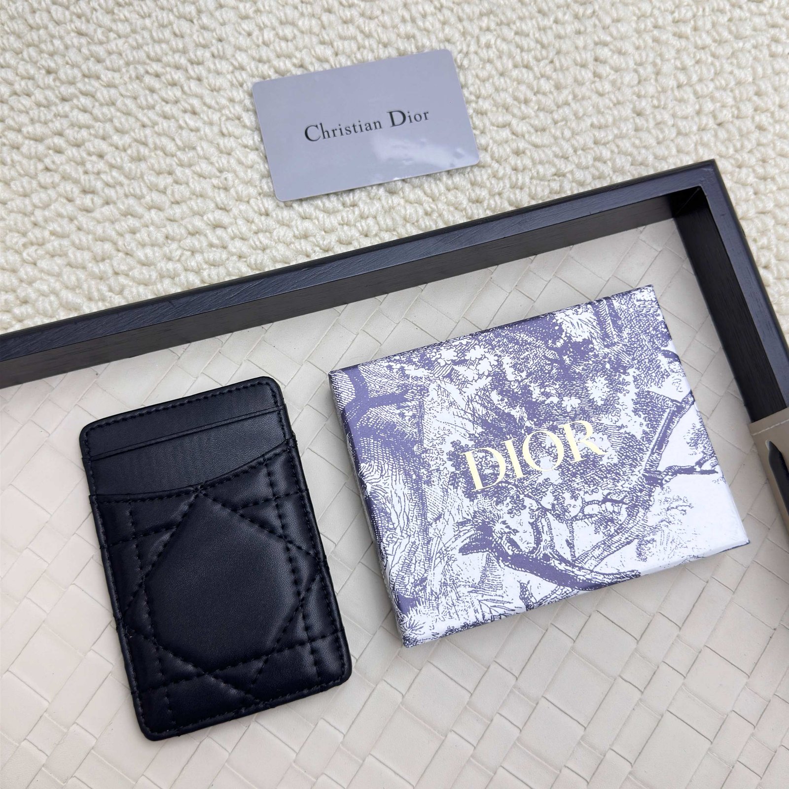 Dior’s new card bag, size: 11 * 7.5 * 1, model 2379 is carefully made of soft cowhide, decorated with rattan plaid noodle thread, and the front is embellished with the “CD” logo. Elegant and exquisite,