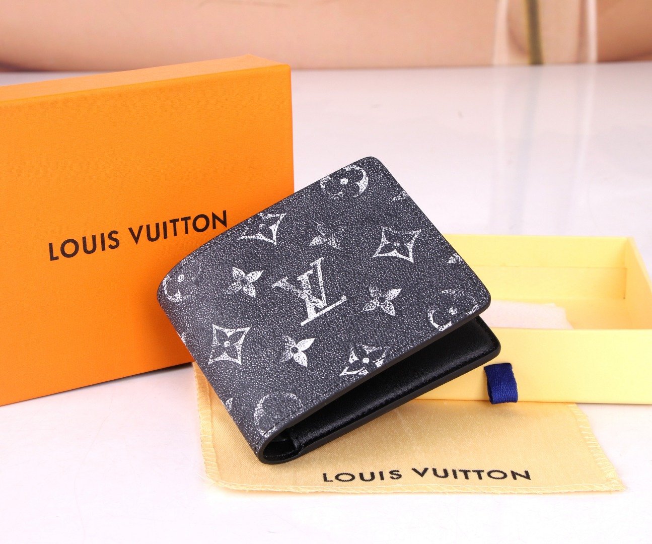 Top original 💎 [Actual photo, own background] M60895 graffiti MULTIPLE wallet is made of Monogram Watercolor Blue canvas, showing the irregular Monogram pattern designed by Virgil Abloh for midsummer. It has card slots, banknote compartments and side compartments. 11.5 x 9 x 1.5 cm 60895.