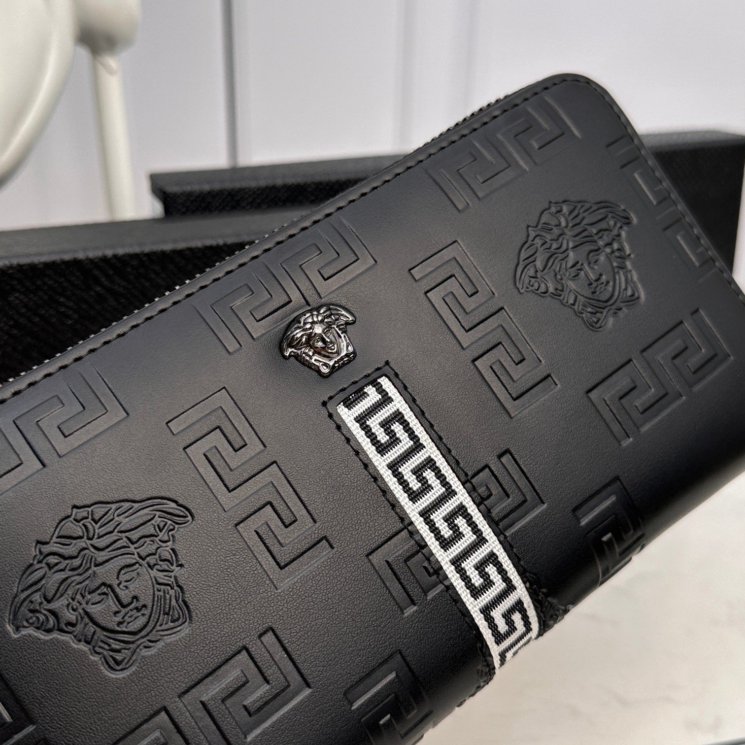 VERSACE! [Model] 666087 small wallet. [Size] 19-10-2.5cm. [Color] Black. High-end quality (original single genuine product). [Material] VERSACE counter purchasing classic! Original factory imported 🐄 cowhide! Genuine imported YKK marked hardware and zipper! Soft leather feel! Unique quality! Fashionable design! Complicated handmade structure.🎉 A must-have for trendy men!