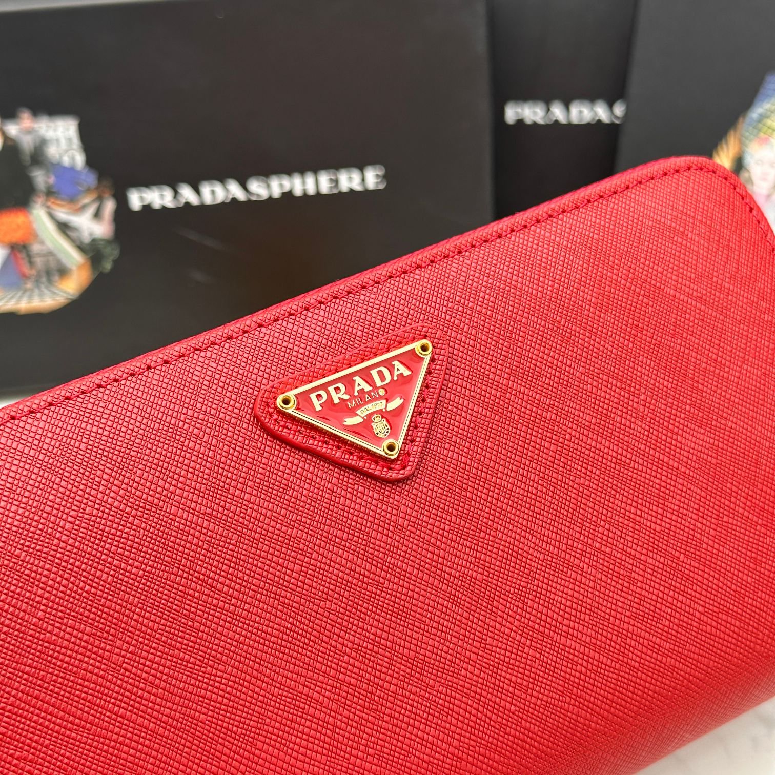PRADA, 👏👏 classic small single zipper wallet 💼 classic, simple and fashionable, Italy’s top original single cross pattern cowhide texture is excellent, imported threaded lining, white steel metal hardware accessories! Exquisite wiring uniform and neat, exquisite workmanship, size: 19x10x2.5, color: Epoxy triangle standard plum red. Big red. Blue. Black. Pink, number: ML201