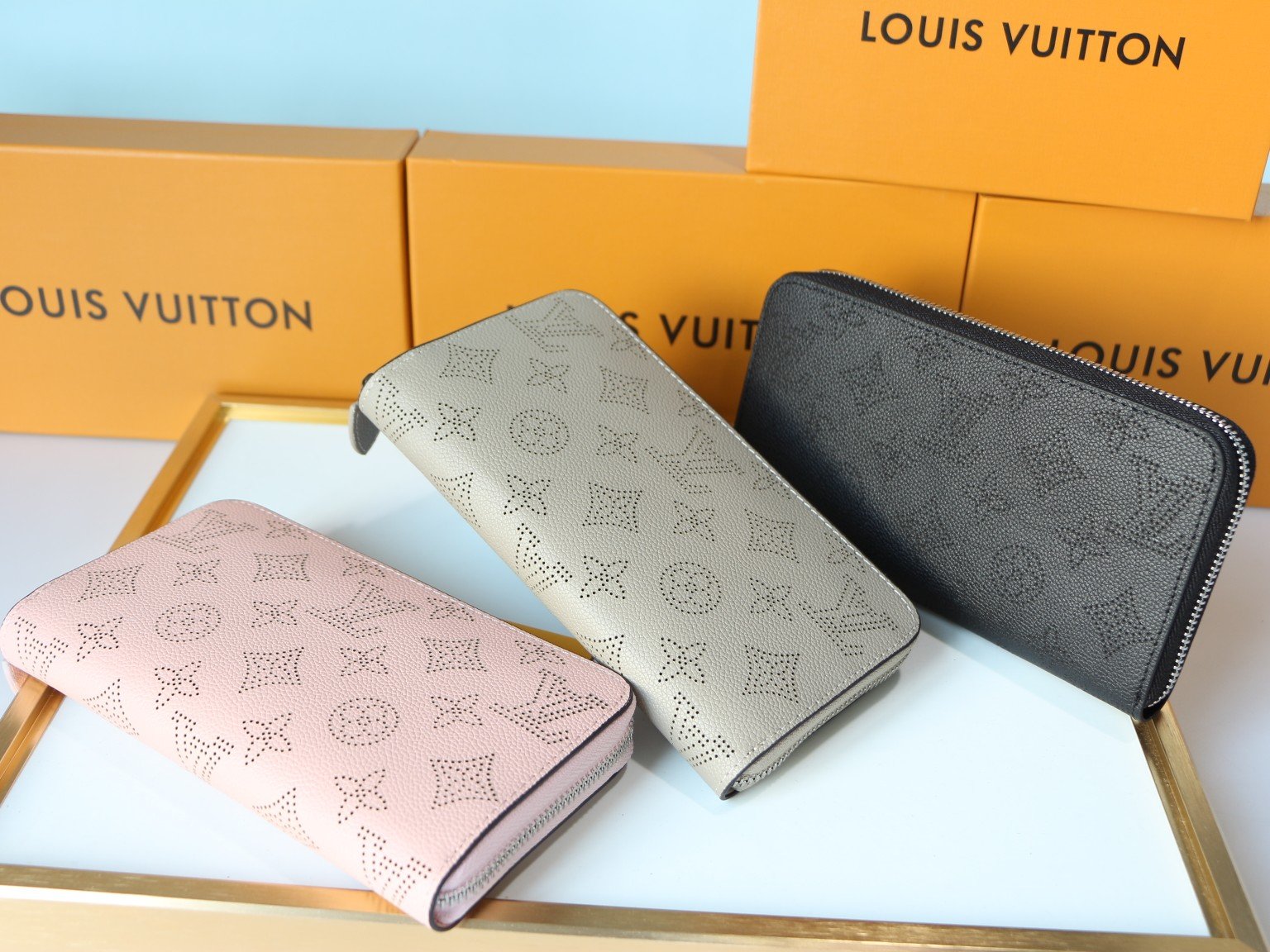 P M58429/M61867 This zipper wallet is made of soft Mahina punched through flower Monogram calf leather. It is known for its secure full zipper design. It is equipped with multiple pockets, compartments and credit card interlayers. The design is highly functional and can be carried as a handbag. Size: 19.5 * 10.5 * 2.5cm