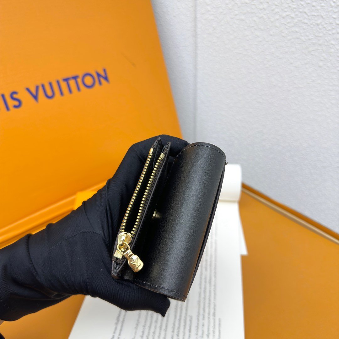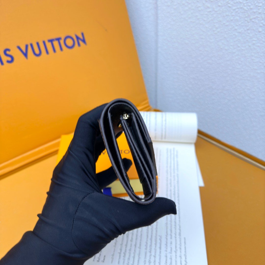 M62933 The compact Portefeuille Lisa is reinterpreted in soft Monogram Empreinte leather and adorned with a Monogram embossing pattern. This stylish purse features a gusset change bag with an LV circle on the zipper head. Inside, there is a banknote compartment, two flat pockets and four card slots.