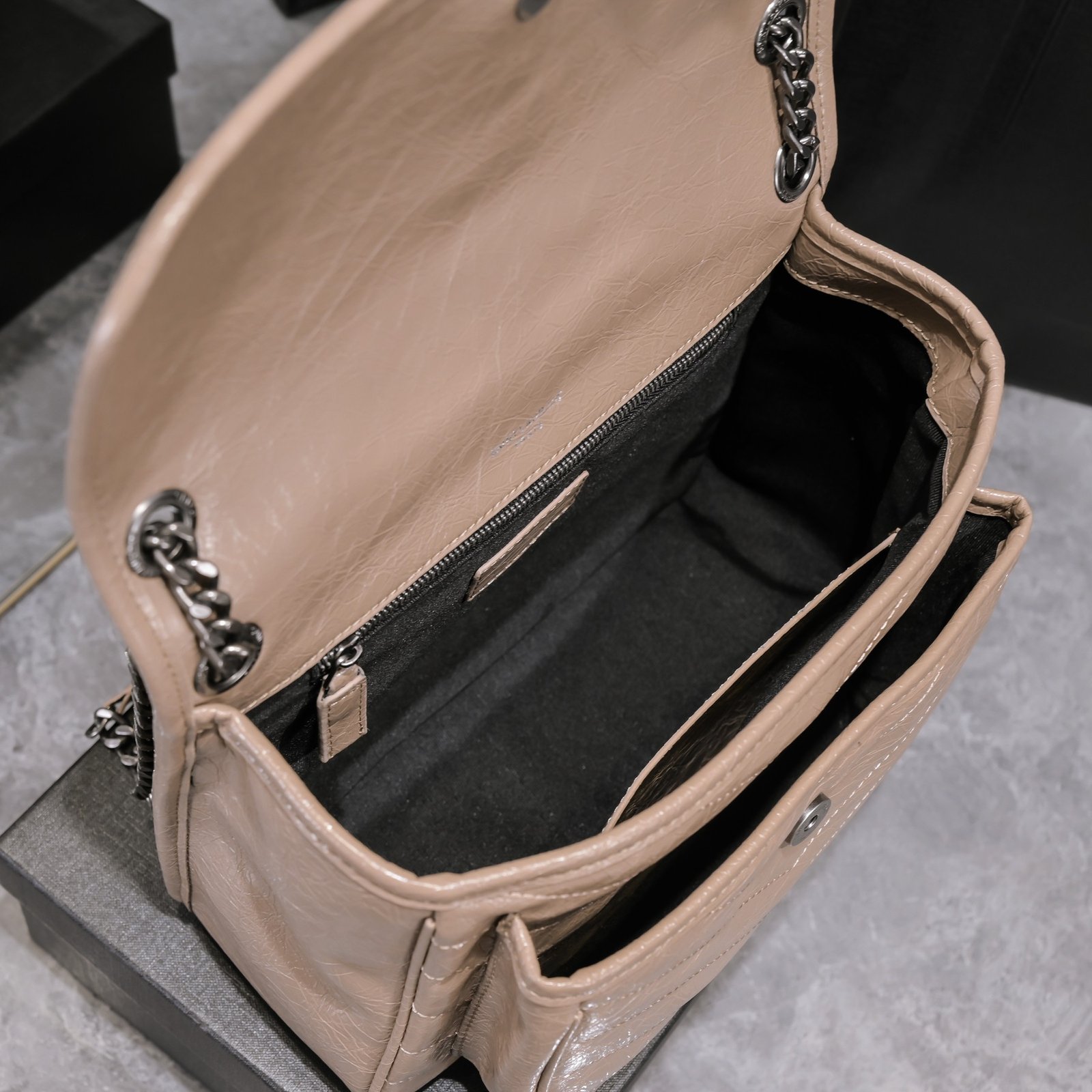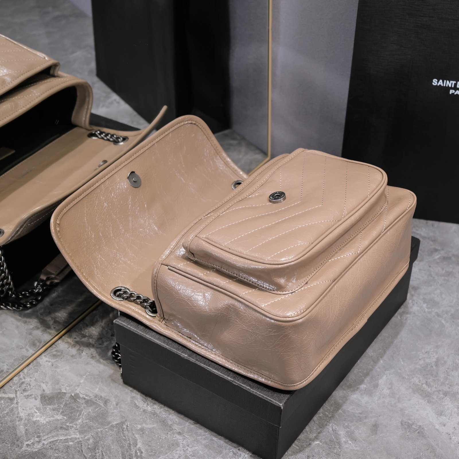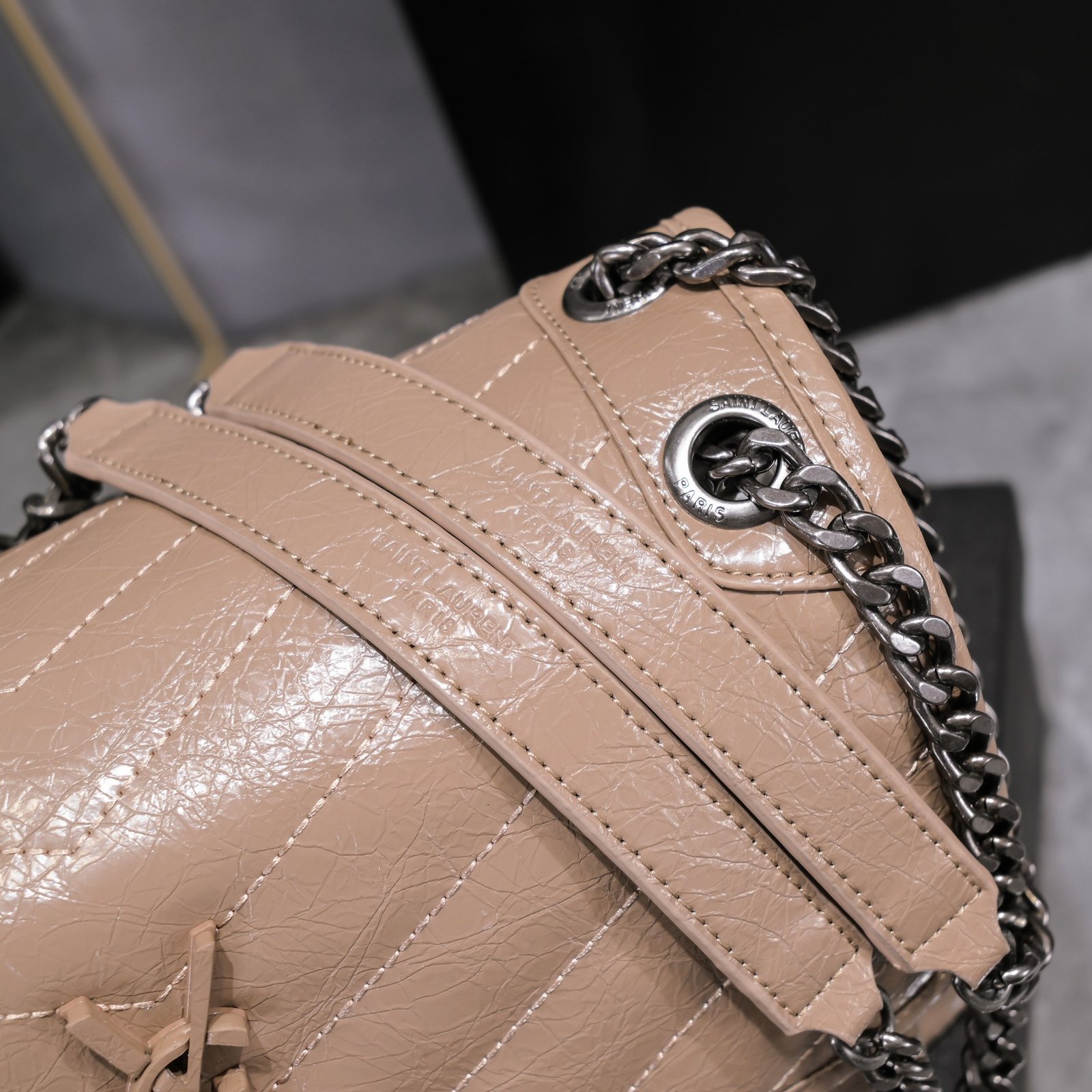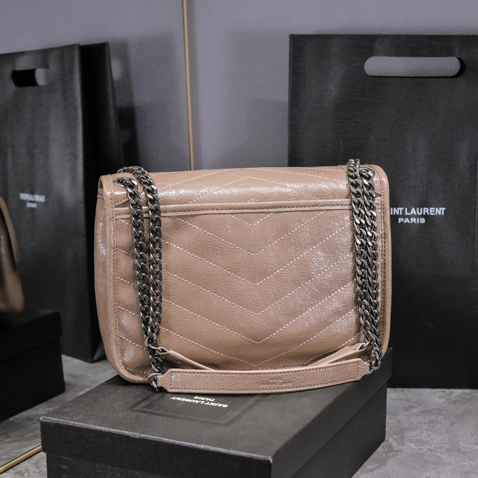 Large Saint Laurent Niki messenger bag – Top Italian two-tone baked tar cowhide is matched with retro hardware. The texture and gloss are very unique! The hardware is even more special. The surface of the hardware LOGO is wrapped with cowhide! Two compartments, one zipper pocket, and super large capacity! The oiled wax leather of the bag body is extremely soft to the touch. There is no problem with random folding. Model: 498894. Size: 28x20x8cm.