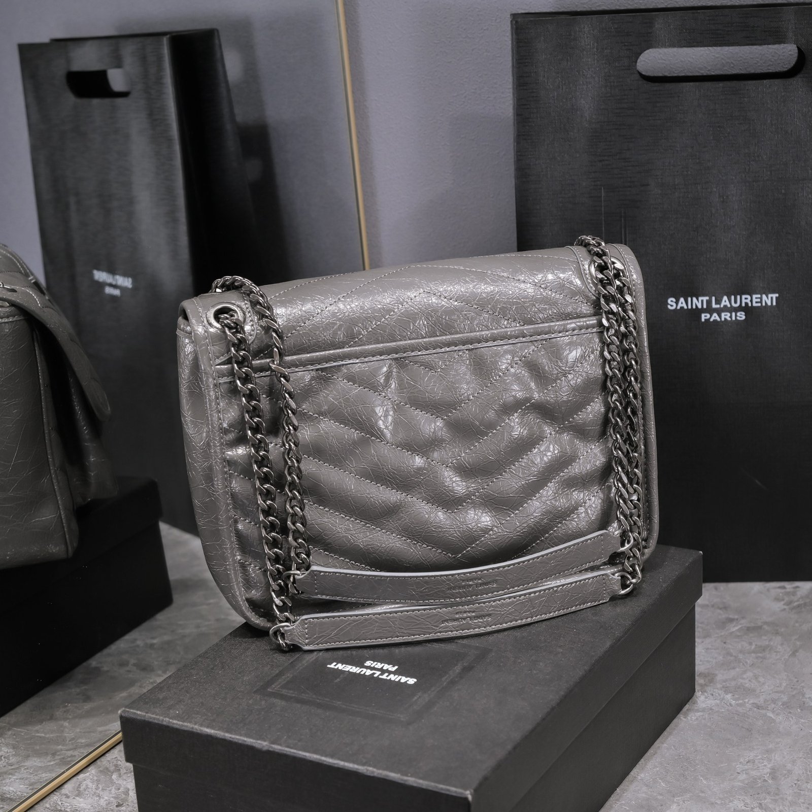 Large Saint Laurent Niki messenger bag – Top Italian two-tone baked tar cowhide is matched with retro hardware. The texture and gloss are very unique! The hardware is even more special. The surface of the hardware LOGO is wrapped with cowhide! Two compartments, one zipper pocket, and super large capacity! The oiled wax leather of the bag body is extremely soft to the touch. There is no problem with random folding. Model: 498894. Size: 28x20x8cm.