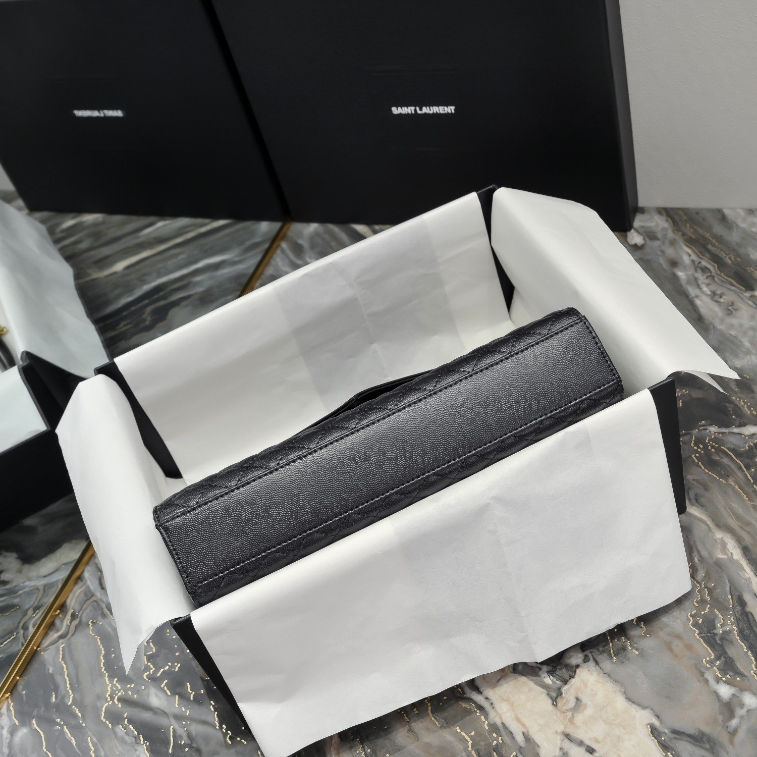 Grain embossed quilted leather envelope bag