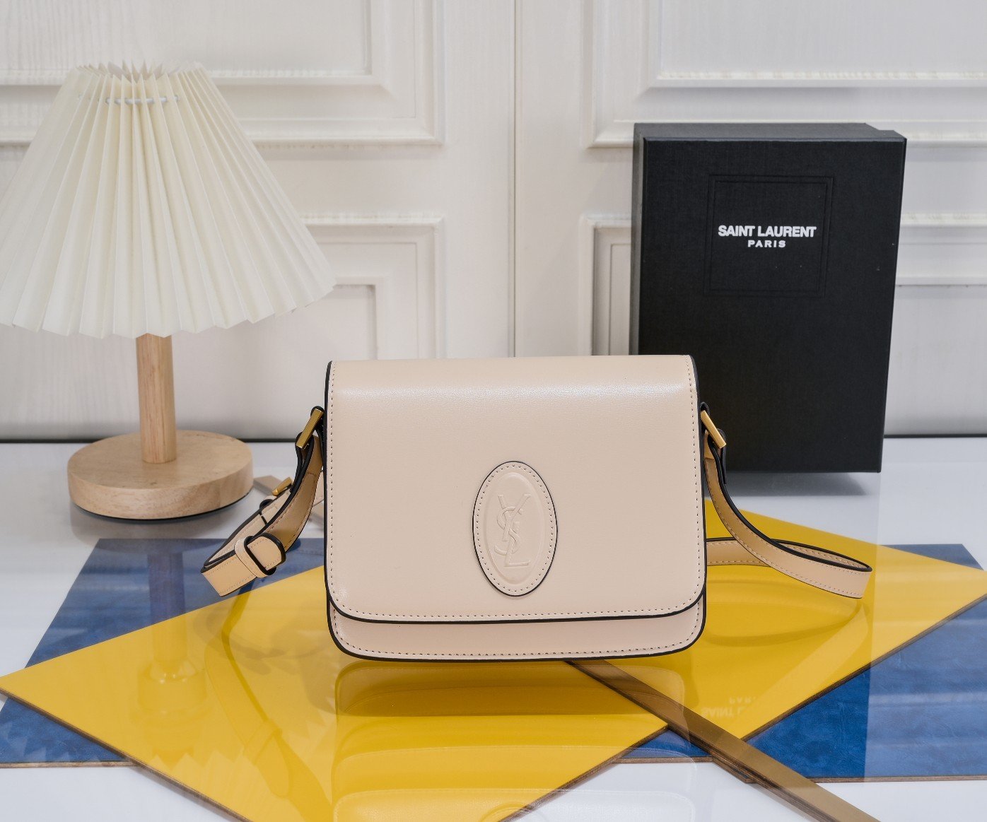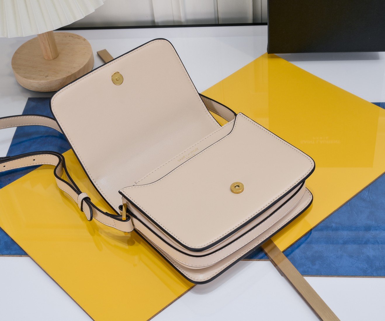 With box. YSL. New Solferino product. Tofu bag. Box calfskin in milk tea color. Original hardware. Simple. Has texture. Very versatile. Also very durable. Classic combination. Size: 19×15×6cm.