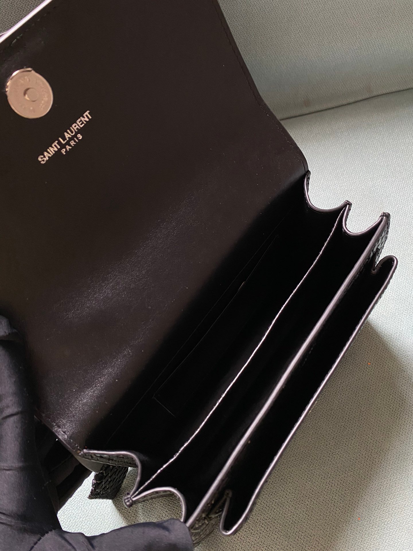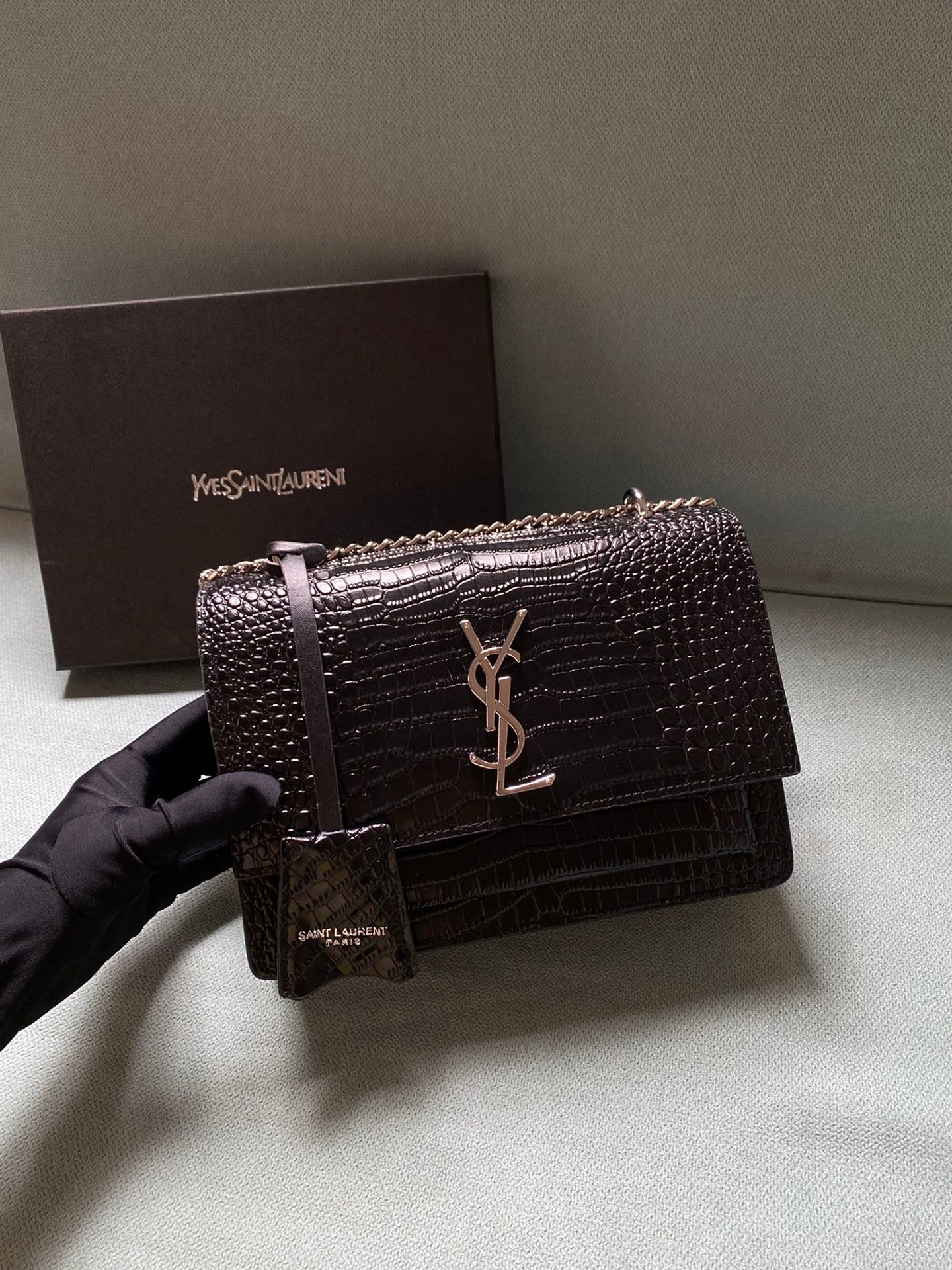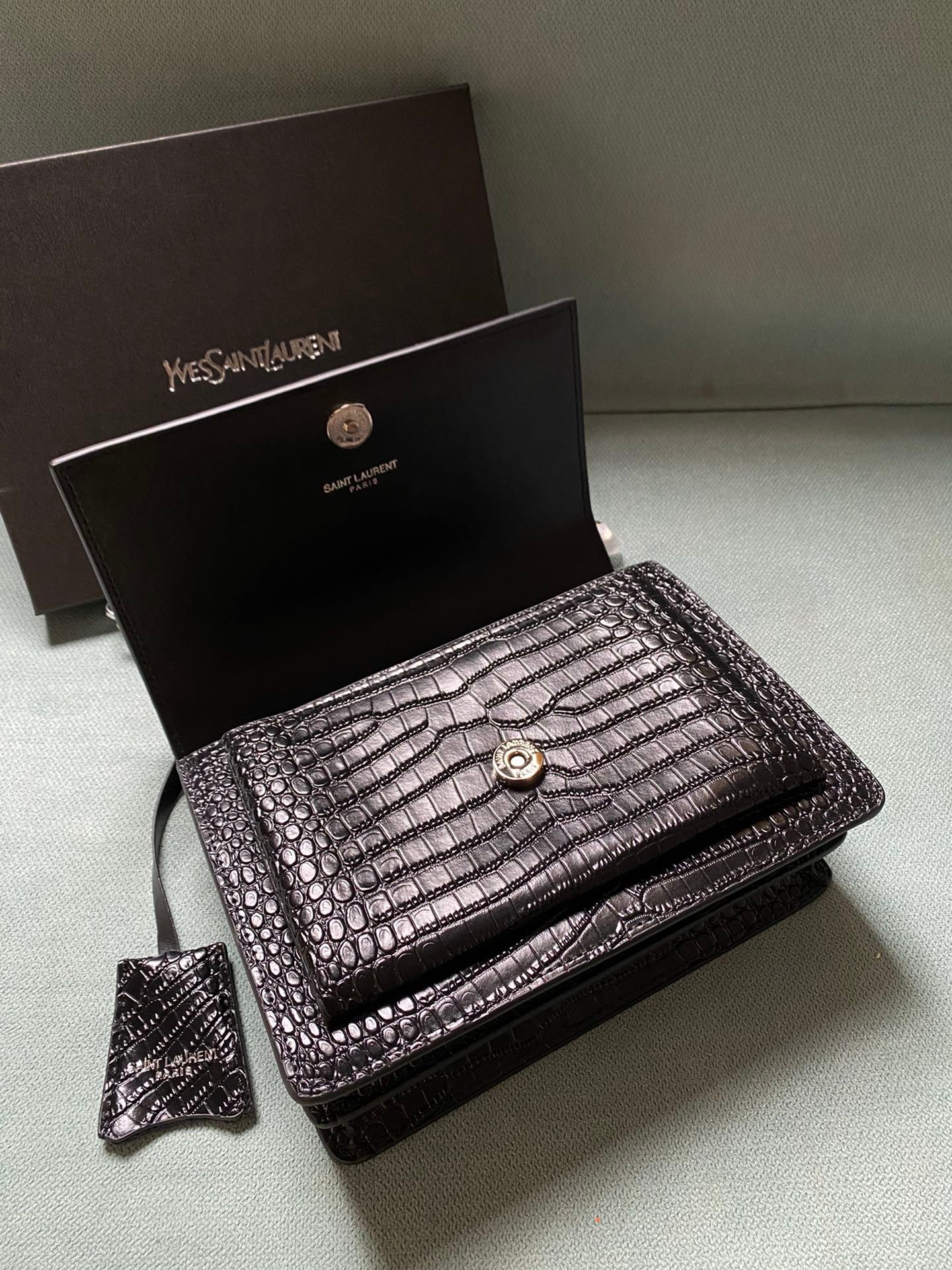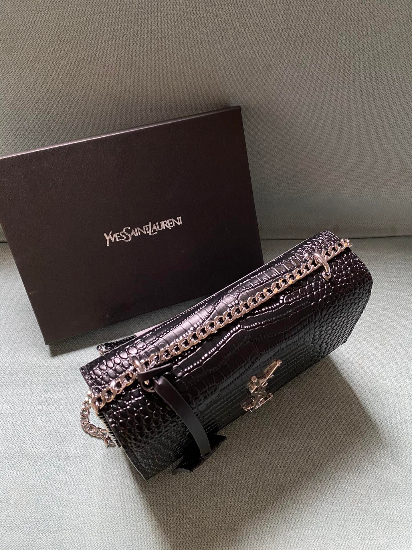 Silver buckle! The latest crocodile pattern in the store counter. The same sunset bag as Wang Ziwen and Zheng Xiuwen. Top imported original single cowhide crocodile pattern. High-end custom. Genuine version. Vacuum-plated antique silver hardware. The workmanship of leather, metal, etc. is simply impeccable! Crocodile pattern. Size: 22*14.