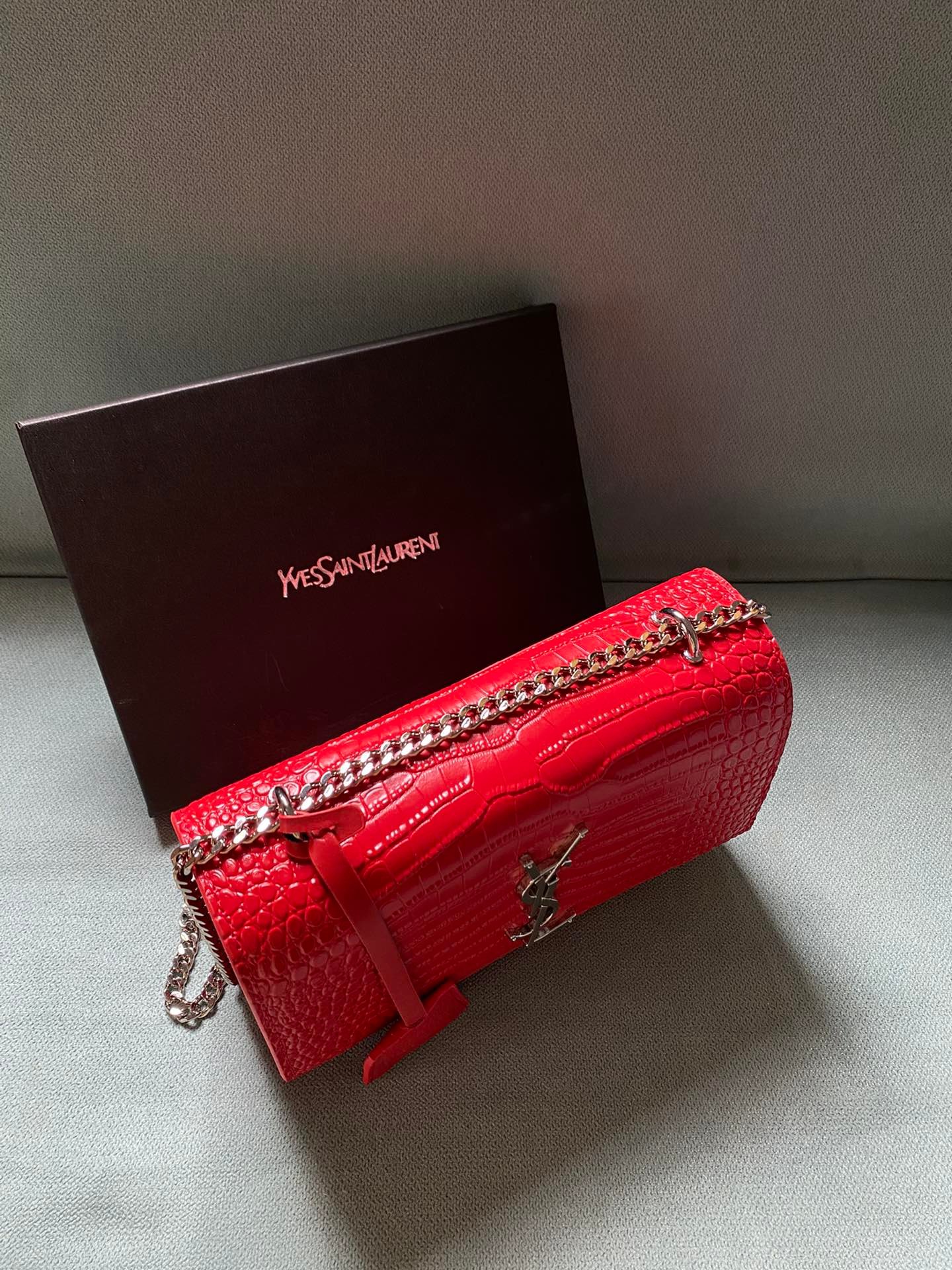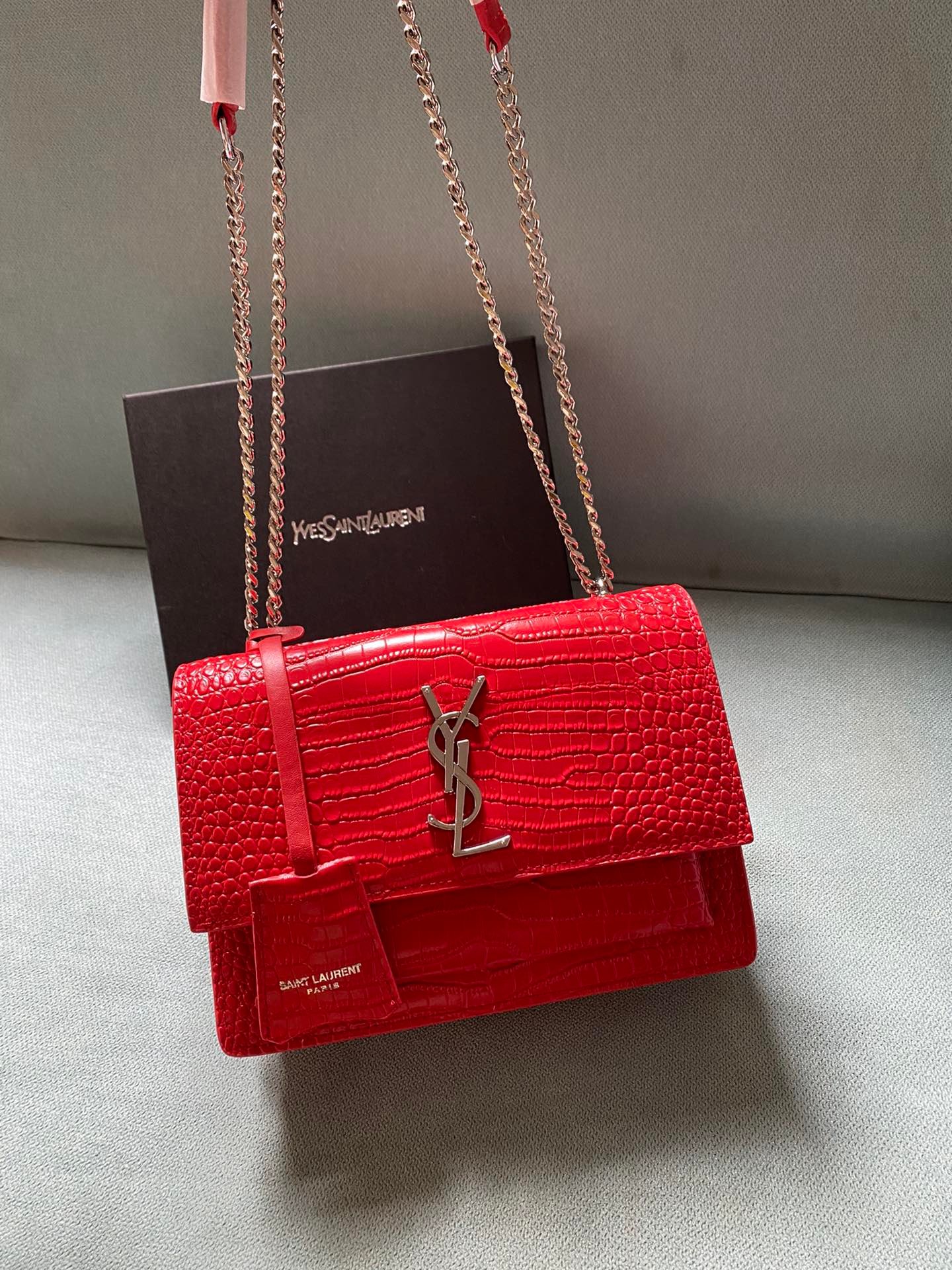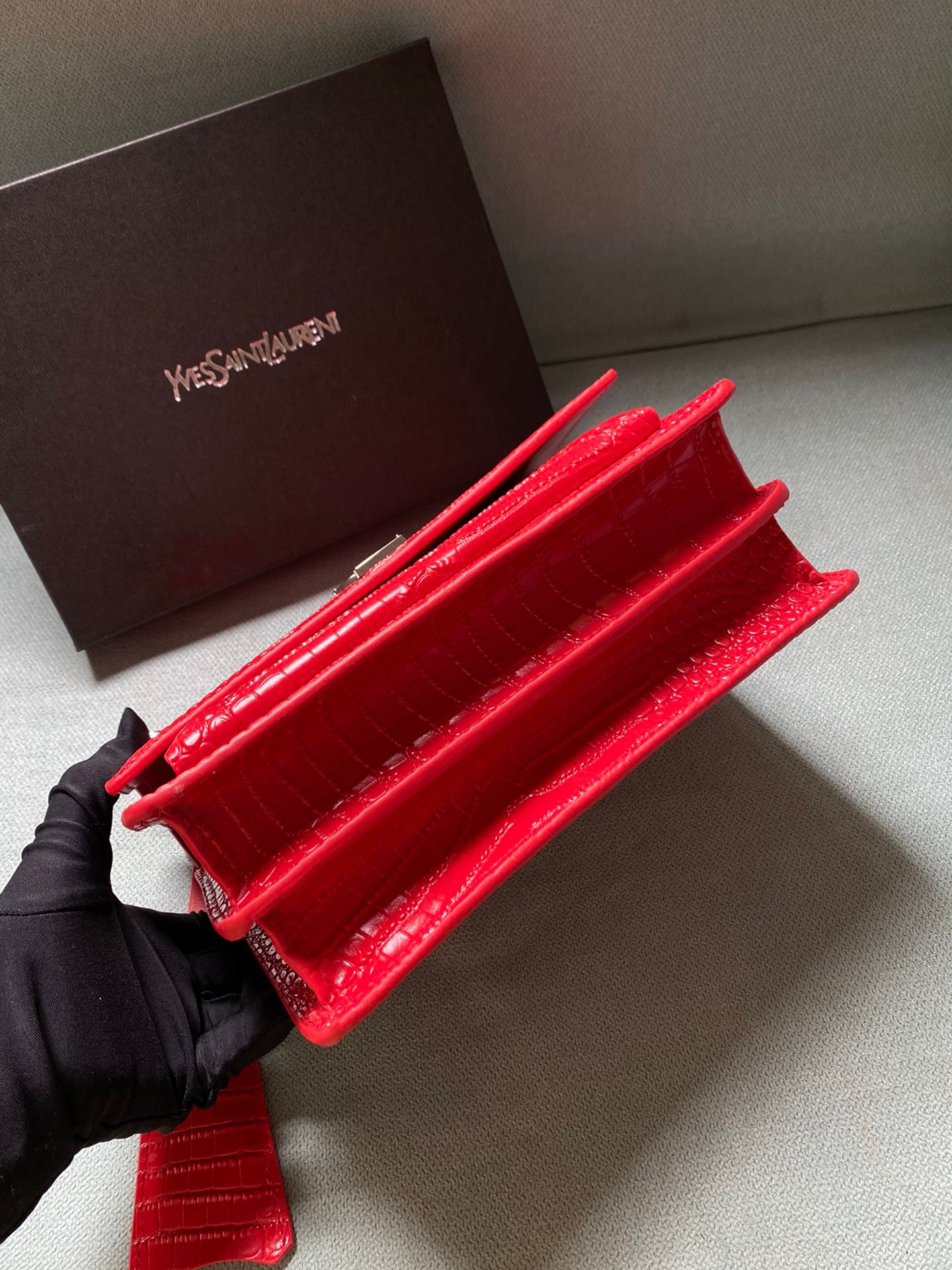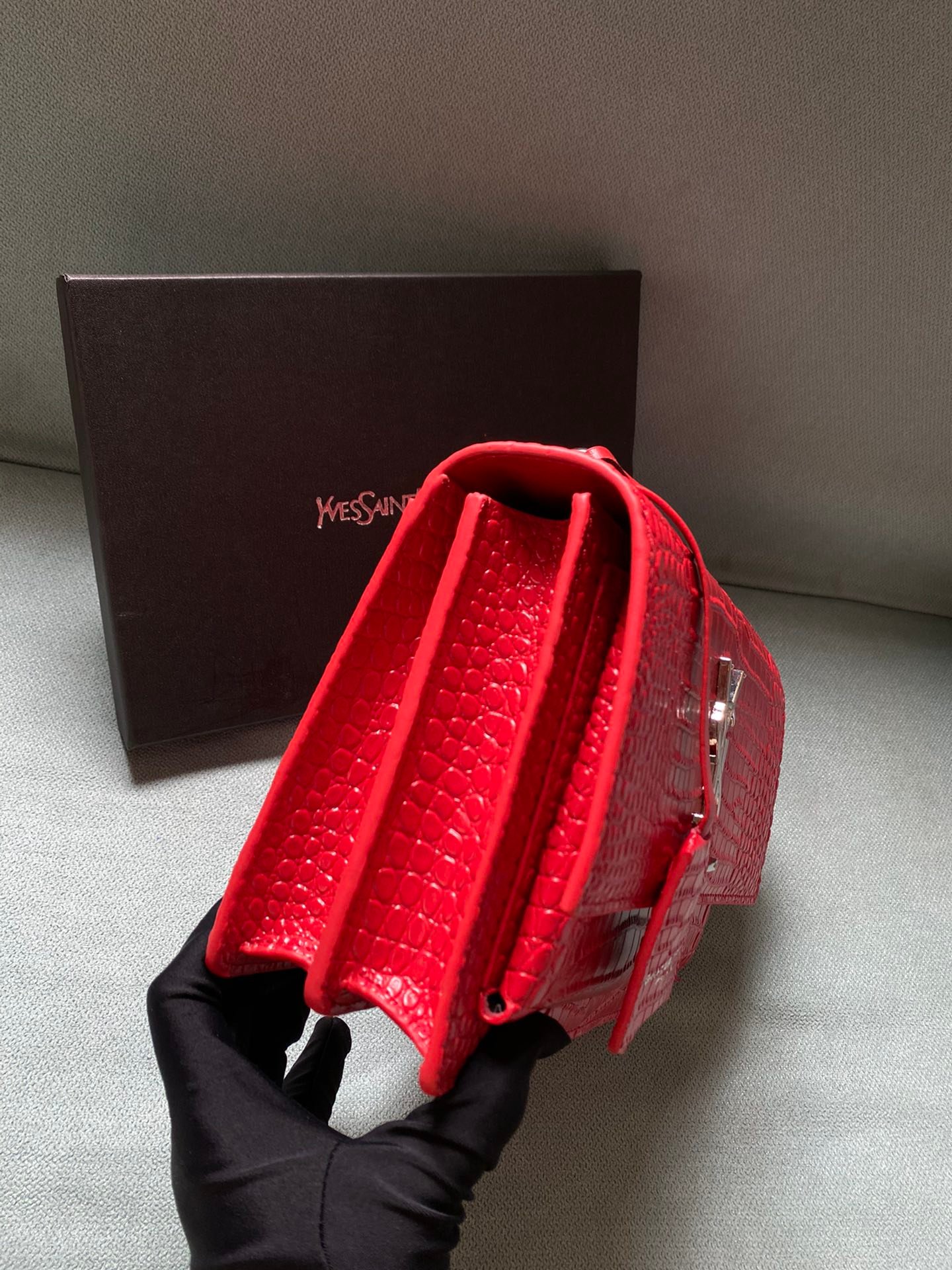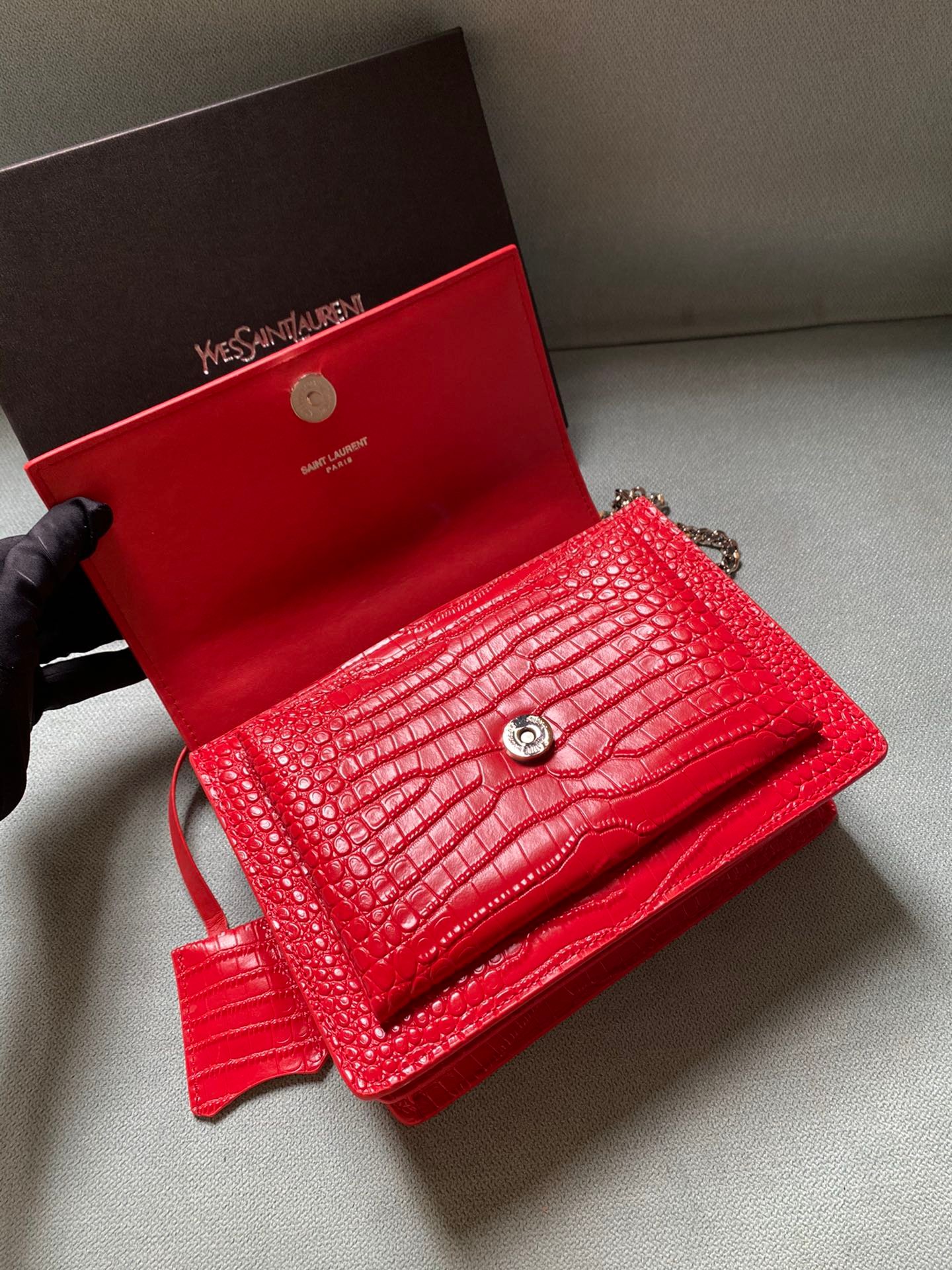 Silver buckle! The latest crocodile pattern in the store counter. The same sunset bag as Wang Ziwen and Zheng Xiuwen. Top imported original single cowhide crocodile pattern. High-end custom. Genuine version. Vacuum-plated antique silver hardware. The workmanship of leather, metal, etc. is simply impeccable! Crocodile pattern. Size: 22*14.