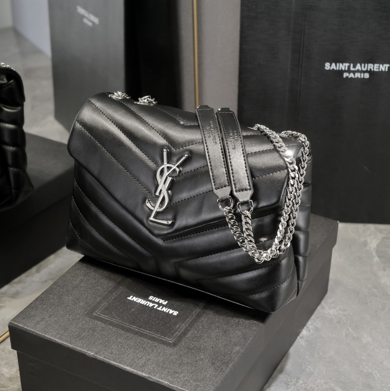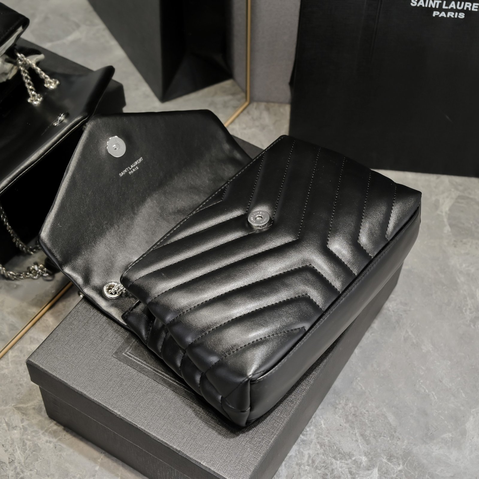 ▪LOULOU▪ Black with silver buckle. The latest upgraded medium-sized version from the store counter. A super practical and versatile one. It has a super large capacity but is not cumbersome at all. It is a very lightweight one. There is a compartment inside so you don’t have to worry about things being messy! Model: 494260. Size: 25×17×9 cm.